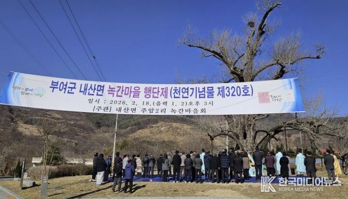 [ 한국미디어뉴스 이원영 기자 ] 부여군 내산면 주암2리 녹간마을에서 나라의 평안을 염원하고, 마을 안녕과 풍년을 기원하는 자연유산 민속행사인 ‘행단제[杏壇祭]’가 지난 18일, 천연기념물 주암리 은행나무 앞에서 엄숙하게 거행됐다.