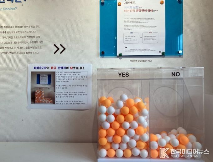 장흥군은 지난 11일 전시 연계 참여 프로그램으로 운영한 ‘사형제도 인식 투표’ 결과를 공개했다.