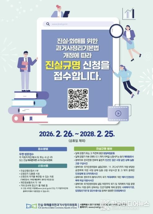신청 기간은 2026년 2월 26일부터 2028년 2월 25일까지로 2년간 운영되며, 위원회 의결에 따라 연장될 수 있다. 신청은 신청서를 작성해 속초시청 자치행정과 또는 서울에 소재하고 있는 진실화해위원회에 직접 방문 제출하거나 우편 등을 통해 제출할 수 있다.