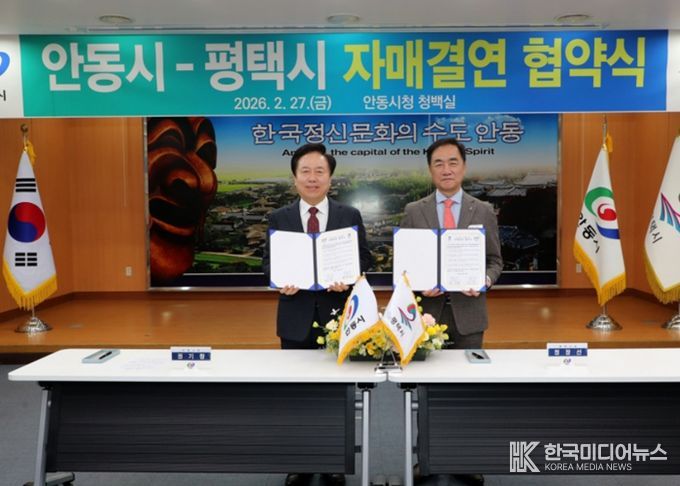 [ 한국미디어뉴스 이보영 기자 ] 안동시는 2월 27일 안동시청에서 평택시와 자매결연 협약을 체결하고 경제․문화․관광‧농업 등 전 분야에 걸친 상생발전의 닻을 올렸다.
