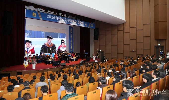 [ 한국미디어뉴스 이원영 기자 ] 국립 인천대학교(총장 이인재)는 “2026학년도 입학식”을 2월 27일 금요일 11시 인천대학교 송도캠퍼스 대강당에서 개최했다.