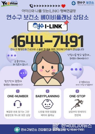 [ 한국미디어뉴스 이원영 기자 ] 연수구가 복잡한 임신·출산 지원 정보를 한눈에 파악하고 전문적인 맞춤형 상담을 받을 수 있는 모자 건강 통합 상담 플랫폼 ‘연수 아이링크(I-LINK)’를 본격적으로 가동한다.