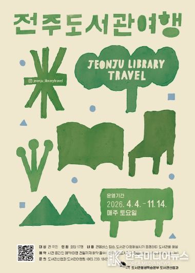 전주시는 오는 4월 4일부터 11월 14일까지 ‘2026년 전주 도서관 여행’ 프로그램을 운영할 계획이라고 3일 밝혔다.
