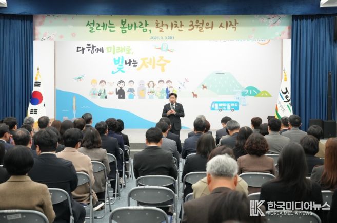 제주도는 3일 도청 탐라홀에서 전 직원이 참여하는 ‘3월 소통과 공감의 날’행사를 개최했다. ‘설레는 봄바람, 활기찬 3월의 시작’이라는 주제로 봄의 기운과 함께 도정에 새로운 활력을 불어넣고, 서로의 다짐을 공유하는 자리로 마련됐다.