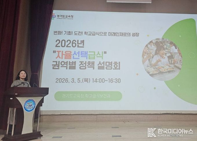 [ 한국미디어뉴스 김일규 기자 ] 경기도교육청이 5일부터 13일까지 도내 4개 권역에서 학생의 건강한 성장과 미래 학교급식 실현을 위한 ‘2026년 자율선택급식 권역별 정책 설명회’를 순차적으로 개최한다.