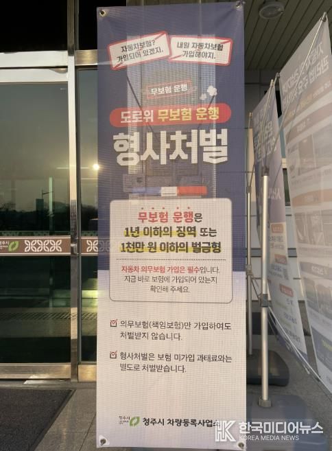 이에 청주시 차량등록사업소는 ‘무보험 운행은 형사처벌 대상’이라는 내용의 홍보 배너를 설치하고, 의무보험 가입 안내문을 제작·배부하는 등 시민 홍보를 강화하며 무보험 운행 근절과 재발 방지에 힘쓰고 있다.