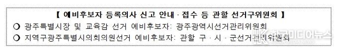 또한, 「공직선거법」 제53조 제1항에 따른 공무원 등은 3월 5일까지 사직해야 공직선거에 입후보가 가능하나, 광주특별시 시장 및 교육감 선거에 입후보하려는 공무원 등은 특별법에 따라 3월 15일까지 사직하면 입후보가 가능하다.