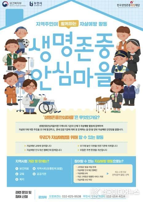 [ 한국미디어뉴스 김만길 기자 ] 부천시는 지역사회 중심의 생명안전망 구축을 위해 ‘생명존중 안심마을’을 기존 8개 동에서 6개 동을 추가해 확대 조성한다.