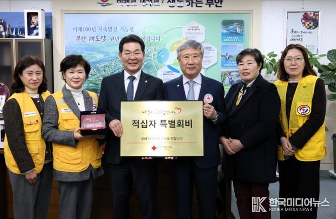[ 한국미디어뉴스 이종철 기자 ] 부안군은 기부문화 확산과 적십자 회비 모금에 군민들의 자발적 참여 분위기를 조성하기 위해 6일 군수실에서 2026년도 적십자 특별회비 전달식을 갖고 대한적십자사 전북지사에 특별회비를 전달했다고 밝혔다.