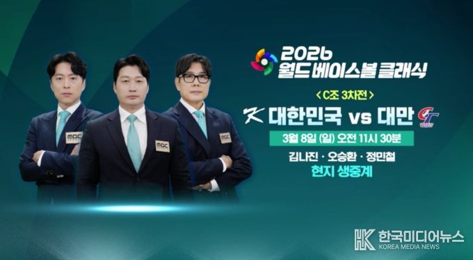 [ 한국미디어뉴스 황영수 기자 ] 2026 월드 베이스볼 클래식(WBC) 1라운드에서 대한민국이 8강 진출을 향한 중요한 승부를 앞두고 있다. MBC는 오늘(8일) 오전 11시 30분부터 일본 도쿄돔에서 열리는 대한민국과 대만의 WBC 1라운드 3차전 경기를 도쿄 현지에서 생중계한다.