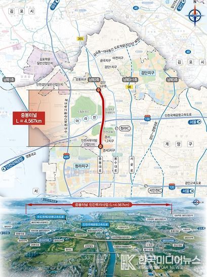 '중봉터널 민간투자사업'은 서구 경서동 경서삼거리에서 서구 왕길동 검단2교차로를 연결하는 총연장 4.567km, 왕복 4차로 규모의 지하터널을 건설하는 사업으로 우선협상대상자가 제안한 총사업비는 3,493억 원이며, 민간투자방식(BTO-a)으로 추진된다.