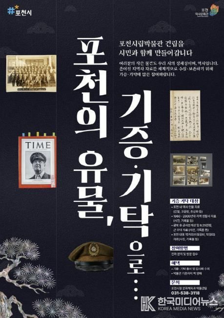 [ 한국미디어뉴스 김서안 기자 ] 포천시는 시민과 함께 만들어가는 포천시립박물관 건립을 위해 포천의 정체성과 역사를 보여주는 유물과 자료의 기증·기탁 운동을 전개한다.