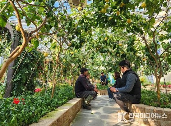 온실 내부에는 감귤류 등 아열대 식물이 터널 형태로 식재되어 이국적인 분위기를 연출하고 있으며, 식물과 꽃 사이를 따라 산책할 수 있는 보행로가 조성되어 관람객들이 자연 속에서 편안한 시간을 보낼 수 있도록 마련되어 있다.