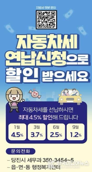 [ 한국미디어뉴스 이원영 기자 ] 당진시는 오는 31일까지 2026년 3월 자동차세 연납 신청을 받는다고 12일 밝혔다.