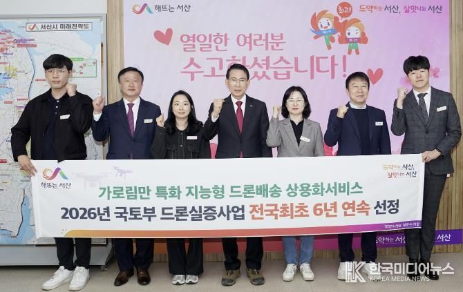 [ 한국미디어뉴스 이원영 기자 ] 충남 서산시는 국토교통부와 항공안전기술원이 주관하는 2026년 드론 실증도시 구축사업 공모에 전국 최초로 6년 연속 선정됐다고 밝혔다.
