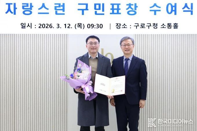 [ 한국미디어뉴스 이보영 기자 ] 구로구가 12일 구청 소통홀에서 구민의 생명 구조에 기여한 정귀현 씨에게 ‘자랑스러운 구민표창’을 수여했다.
