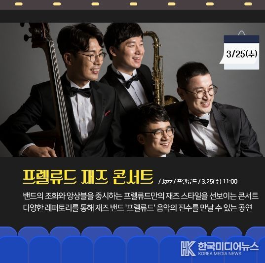 [ 한국미디어뉴스 김만길 기자 ] 인천 남동문화재단은 매달 마지막 주 수요일 오전 11시마다 ‘마티네콘서트 마실’을 진행하며, 2026년도 첫 마실 '프렐류드 재즈 콘서트'는 3월 25일에 개최한다.