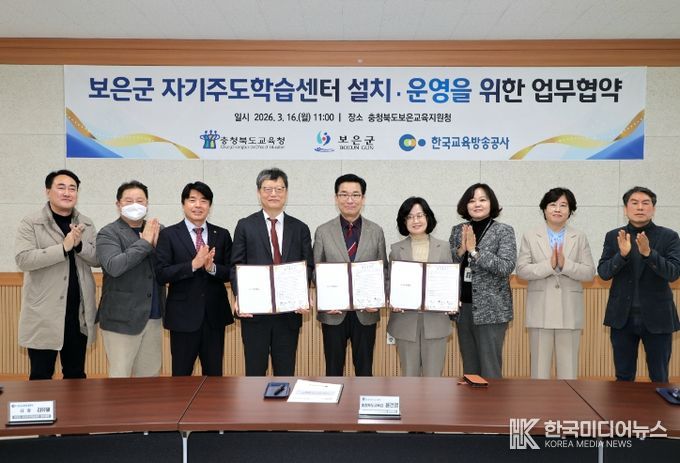 [ 한국미디어뉴스 김풍옥 기자 ] 충청북도교육청은 16일, 보은교육지원청에서 보은군, 한국교육방송공사와 보은군 자기주도학습센터 설치‧운영을 위한 업무협약을 체결했다.