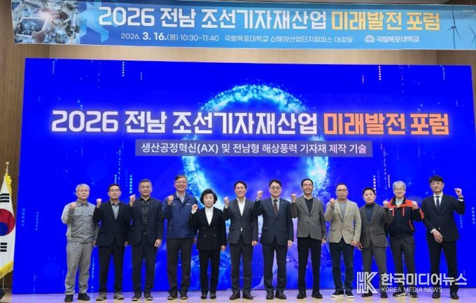 [ 한국미디어뉴스 이종철 기자 ] 전라남도는 16일 영암 신해양산업단지캠퍼스에서 ‘전남 조선기자재산업 미래발전 포럼’을 열어 조선산업의 인공지능 대전환(AX) 기술 방향을 논의했다.