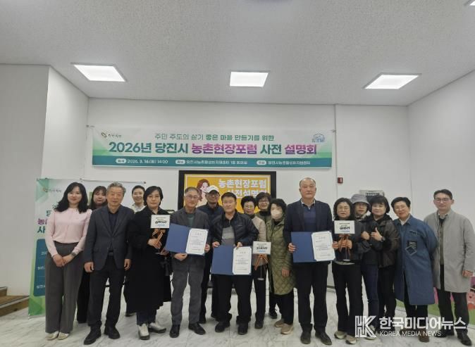 [ 한국미디어뉴스 이원영 기자 ] 당진시는 당진시농촌활성화지원센터가 지난 16일, 주민 주도의 지속 가능한 마을 만들기를 위한 ‘2026년 농촌현장포럼 사전 설명회’를 개최했다고 17일 밝혔다.