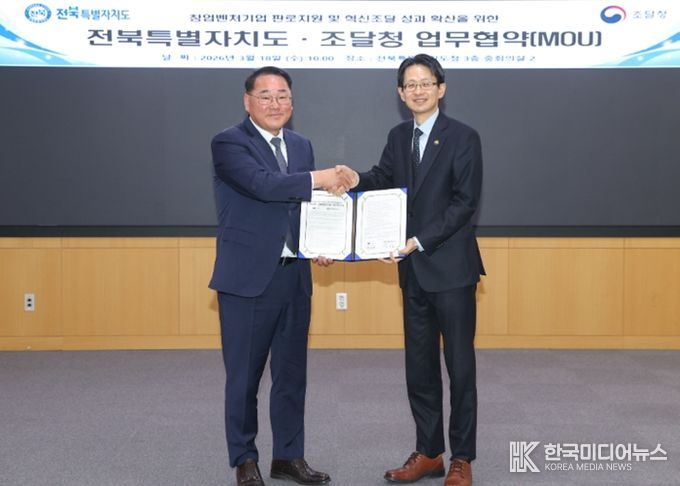 [ 한국미디어뉴스 이종철 기자 ] 전북특별자치도가 전국 지자체 중 최초로 조달청의 혁신제품 ‘지역 스카우터’ 추천 관리기관으로 지정되며, 지역 혁신 스타트업의 공공조달 시장 진입을 위한 가장 빠른 길을 열었다.