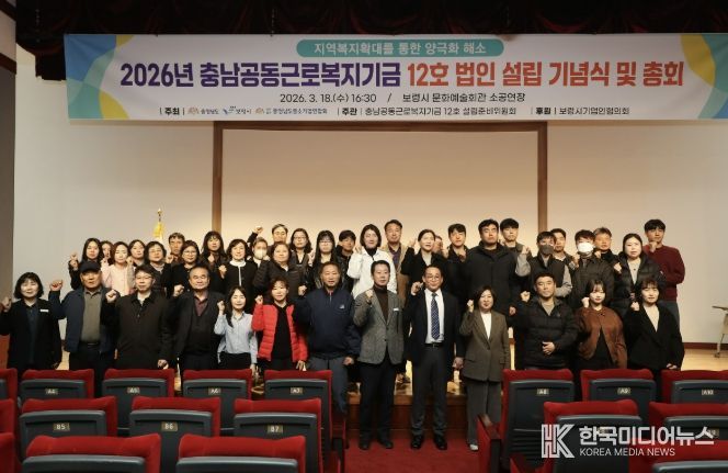 [ 한국미디어뉴스 이원영 기자 ] 보령시는 18일 보령문화예술회관 소공연장에서 충청남도와 보령시, 관내 중소기업 노·사 관계자 등 60여 명이 참석한 가운데 ‘충남공동근로복지기금 12호’ 법인 설립총회를 개최했다고 밝혔다.