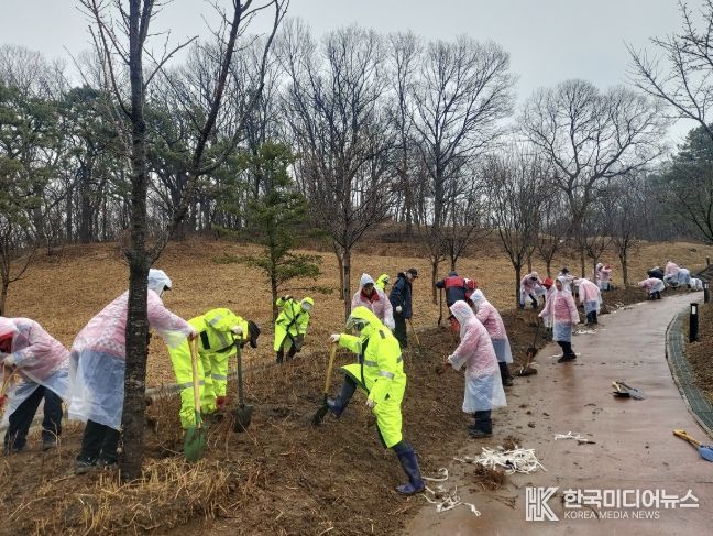 이날 행사는 봄비가 오는 가운데 초막골 생태공원내 초막동천폭포 녹지에서 공무원 등 70여 명이 참석해 진행됐으며 산수국, 층층나무 등 3,000여본의 나무를 심었다.
