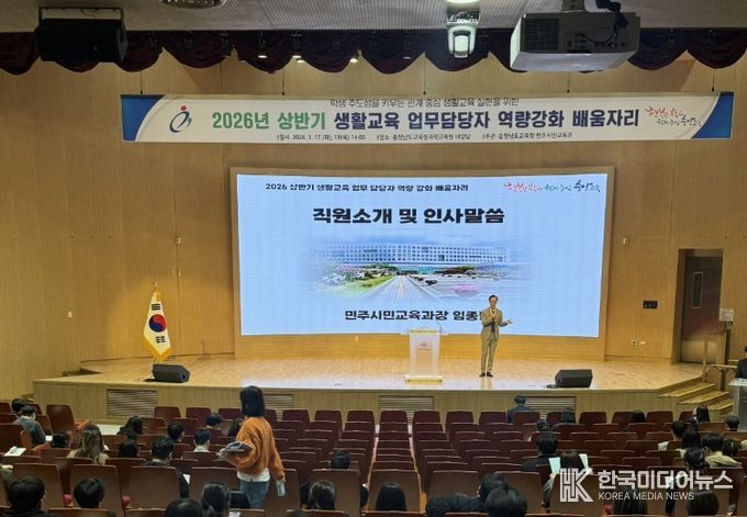 [ 한국미디어뉴스 이원영 기자 ] 충남교육청은 17일과 19일 충청남도교육청과학교육원(아산)에서 도내 초중고등학교 교사 800여 명을 대상으로 ‘2026 상반기 인성․생활교육 업무 담당자 역량 강화 배움 자리’를 개최했다.