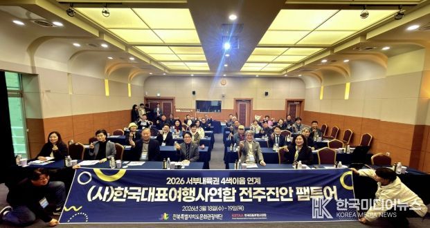 [ 한국미디어뉴스 이종철 기자 ] 전북특별자치도문화관광재단은 4색이음 연계 관광상품 기획을 위한 팸투어를 진안에서 진행했다. 이번 팸투어는‘2026-2027 진안 방문의 해’를 맞아 진안군의 관광 활성화를 위해 지난 18일부터 19일까지 1박 2일간 한국대표여행사연합 임직원 27명을 초청해 진행됐다.