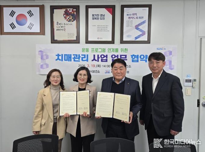 [ 한국미디어뉴스 김홍철 기자 ] 사천시보건소(치매안심센터)는 지난 19일 지역 주민의 치매예방과 중증화 억제를 위해 사천스포츠클럽과 ‘인지 훈련 및 맞춤형 운동 프로그램 연계 운영’을 위한 상호 업무협약을 체결했다