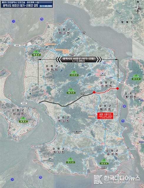 [ 한국미디어뉴스 이원영 기자 ] 인천광역시는 최근 착공식을 개최한 『계양∼강화 고속도로』와 연계해 강화군 내 주요 도로망(동서2축)인 광역시도60호선(강화 선원) 도로건설사업을 본격 추진한다고 밝혔다.