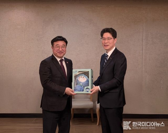황기연 전남도지사 권한대행은 2026여수세계섬박람회의 마스코트인 ‘다섬이’ 인형을 윤호중 장관에게 전달하며 섬박람회에 대한 관심과 협조를 요청했다.
