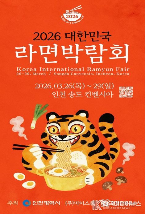 [ 한국미디어뉴스 이원영 기자 ] 인천광역시는 오는 2026년 3월 26일부터 29일까지 4일간 송도컨벤시아에서 ‘2026 대한민국 라면박람회’를 개최한다고 밝혔다.