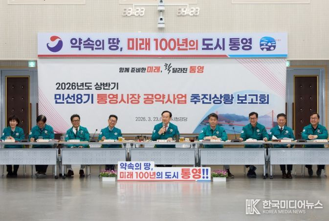 [ 한국미디어뉴스 김홍철 기자 ] 통영시는 지난 23일 시청 회의실에서 2026년 상반기 민선8기 시장 공약사업 추진상황 보고회를 개최하고, 공약사업 전반에 대한 추진상황과 향후 계획을 점검했다.