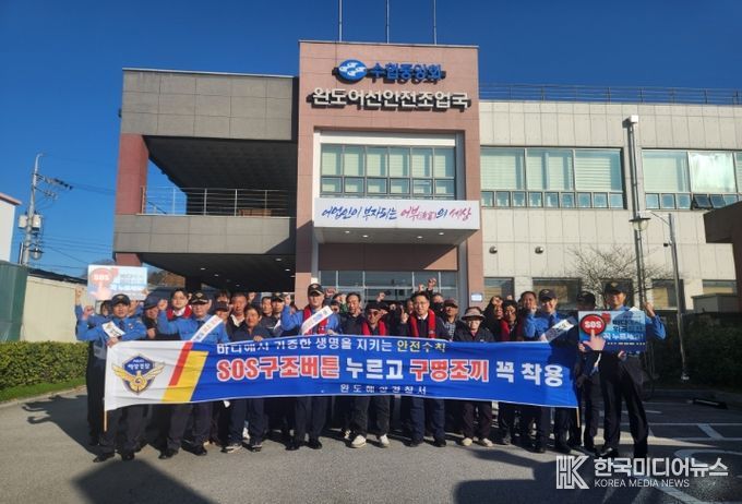 [ 한국미디어뉴스 이종철 기자 ] 완도해양경찰서(서장 김태환)는 지난 19일 완도군 원동항에서 완도 어선안전조업국과 합동으로 어민들과 함께하는 ‘구명조끼 착용 캠페인’을 실시했다.