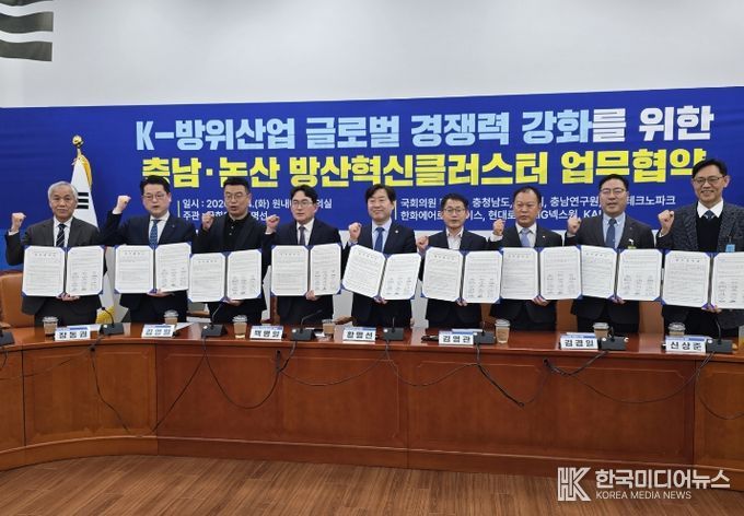 [ 한국미디어뉴스 이원영 기자 ] 대한민국 국방수도 충남이 방산혁신클러스터 유치를 위해 지역 국회의원, 글로벌 방산기업과 손을 맞잡았다.