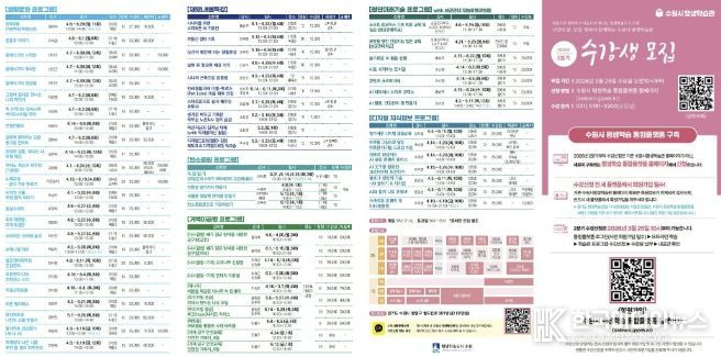 [ 한국미디어뉴스 김일규 기자 ] 수원특례시는 3월 25일 오전 10시부터 수원시 평생학습관 2026년 2분기 프로그램 수강생을 모집한다.