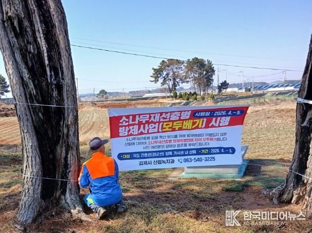 [ 한국미디어뉴스 이원영 기자 ] 김제시는 청정 산림을 보호하고 소나무재선충병 확산을 차단하기 위해 국도 21호선(전군선) 양측 가시권 내 소나무림을 대상으로 오는 4~5월 중 수종전환(모두베기) 방제사업을 추진한다고 밝혔다.