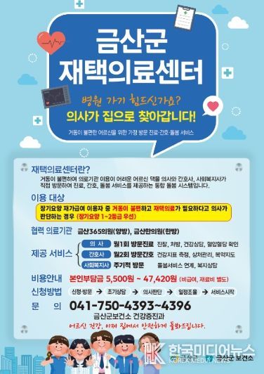 보건소 관계자는 “거동이 불편해 병원 이용이 어려운 어르신들이 집에서도 필요한 의료서비스를 받을 수 있도록 재택의료센터 프로그램을 진행할 것”이라며 “읍면 행정복지센터와 긴밀히 협력해 대상자를 적극 발굴함으로써 통합돌봄지원법 시행에 맞춰 지역 중심 돌봄체계를 안정적으로 운영해 나가겠다”고 말했다.