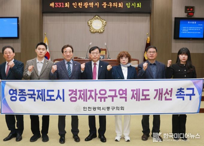 [ 한국미디어뉴스 이원희 기자 ] 중구의회는 26일 본회의장에서 ‘영종국제도시 경제자유구역 제도 개선’을 촉구하는 결의문을 발표했다.
