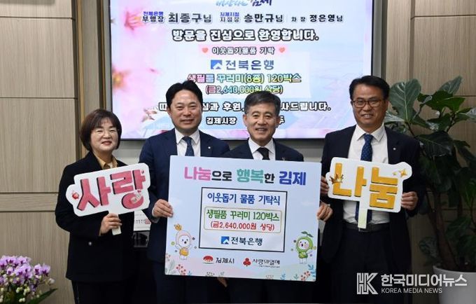 전북은행 최종구 부행장은 “10년 넘게 이어온 김제시와의 소중한 인연이 지역민들에게 실질적인 힘이 되길 바란다”며 “앞으로도 계절과 상황에 맞는 세심한 나눔을 통해 지역사회와 함께 호흡하는 든든한 금융기관이 되겠다”고 전했다.
