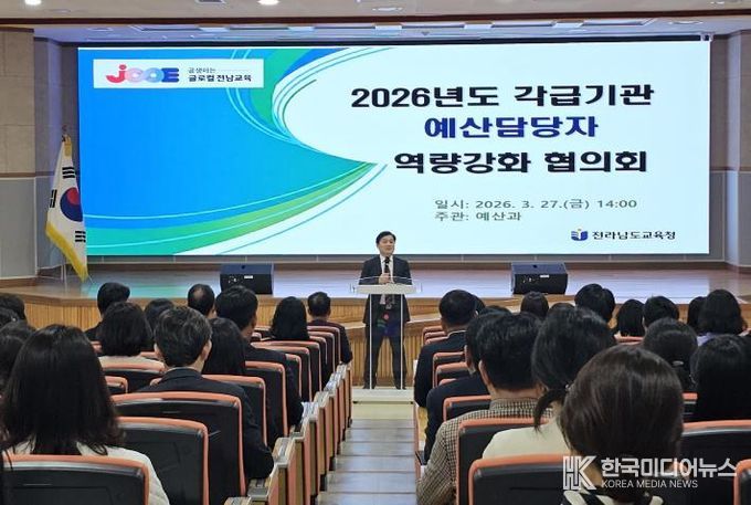 [ 한국미디어뉴스 이종철 기자 ] 전라남도교육청이 27일 전남교육청교육연구정보원에서 ‘2026년 예산업무 담당자 역량강화 협의회’를 열어, 상반기 신속집행 추진과 재정 운영 전략을 공유했다.