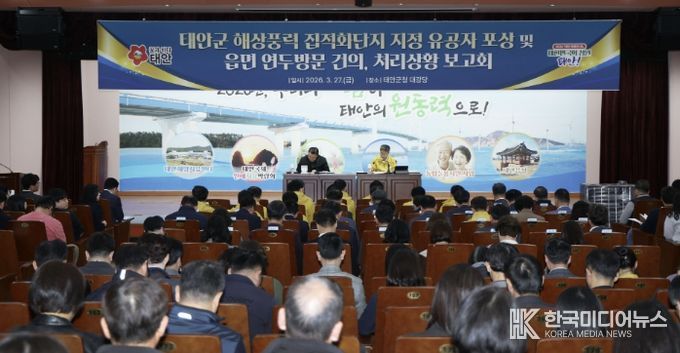 [ 한국미디어뉴스 이원영 기자 ] 태안군이 지난 27일 군청 대강당에서 가세로 군수를 비롯해 부군수, 부서장, 읍·면장과 공직자 등 200여 명이 참석한 가운데 ‘2026년 읍·면 방문 건의사항 처리상황 보고회’를 개최했다.