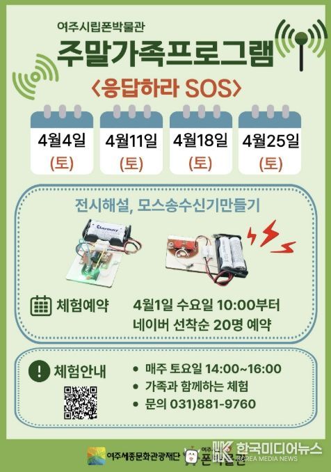 이순열 여주세종문화관광재단 이사장은 “이번 4월 프로그램은 통신의 출발점인 모스 신호를 직접 체험하며 과학적 원리를 배우는 동시에 가족 간 소통의 즐거움을 느낄 수 있는 시간”이라며 “아이들에게는 호기심과 탐구심을, 가족에게는 특별한 추억을 선사하는 기회가 되길 바란다”고 전했다.