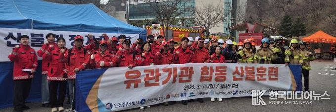[ 한국미디어뉴스 이원희 기자 ] 인천시 중구는 산불 위험이 큰 봄철을 맞이해 지난 30일 월미산 일원에서 지역 유관기관과 ‘2026년도 산불 진화 합동훈련’을 진행하고, 유기적 협력 체계를 구축했다고 밝혔다.