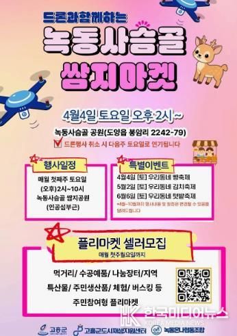 군 건설과 관계자는 “녹동 사슴골 쌈지마켓은 주민 주도의 도시재생과 지역 상권 활성화를 위한 행사”라며 “앞으로도 지역민이 중심이 되는 지속 가능한 도시재생 행사를 이어가겠다”고 말했다.