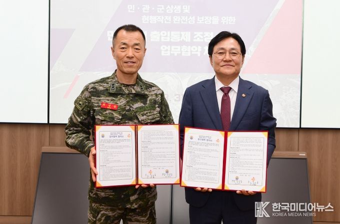 강화군은 3월 31일(화) 오전 10시 30분, 해병대 제2사단에서 민북지역 출입통제 체계 개선을 위한 업무협약을 체결했다. 이날 협약식에는 박용철 강화군수와 최영길 해병대 제2사단장이 참석해 협약서에 서명하며 양 기관 간 협력 체계를 공식화했다.