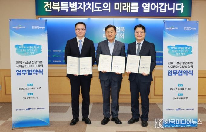 [ 한국미디어뉴스 이종철 기자 ] 전북특별자치도가 삼성물산·삼성전자와 손잡고 전북 청년 지원을 위한 사회공헌 파트너십을 본격 가동한다.