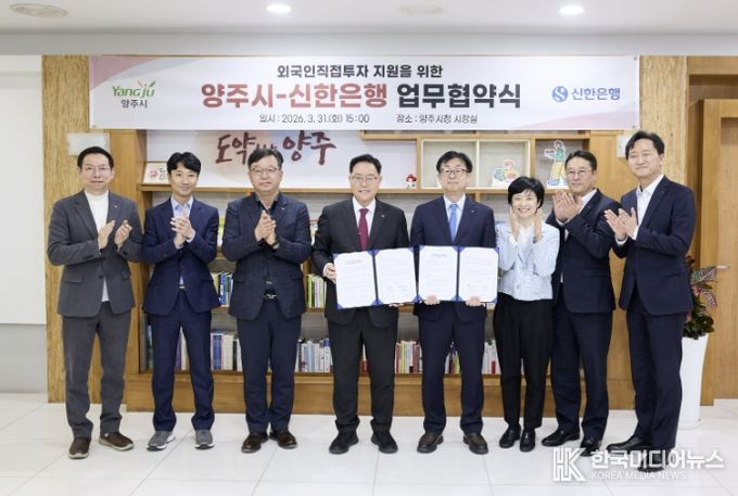 [ 한국미디어뉴스 기자 ] 양주시가 지난 31일 양주시청에서 외국인직접투자 지원을 위해 양주시와 신한은행 간 업무협약을 체결했다.