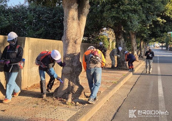 수간주사는 전문가 자문과 시범 방제를 통해 충분히 그 효과가 입증됐으며, 지난해 7월 후박나무 가로수 800여 본을 대상으로 시범 방제를 실시했다. 그 결과, 통상 연말이나 연초에 발생하던 나방류와 진딧물 등 병해충 피해가 크게 줄어든 것으로 확인됐으며, 이를 바탕으로 올해는 23개 구간 4,800여 본으로 방제를 확대해 완료했다.